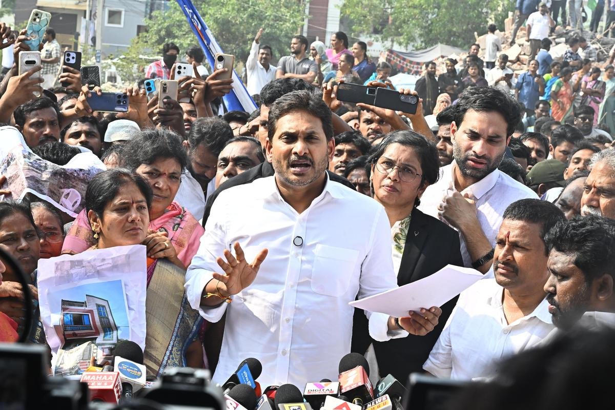 Former Chief Minister and YSR Congress Party president Y.S. Jagan Mohan Reddy demanded a Central Bureau of Investigation (CBI) inquiry into the demolition of houses at Joji Nagar in Vijayawada. Addressing the media, he alleged that individuals holding influential positions were involved in the demolition, which he said was carried out in violation of court orders.